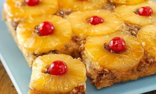 Place Pineapple in the bottom of a slightly greased glass baking pan and pour the sugar mixture over the pineapple. Place the cherries in various places on the pineapple.