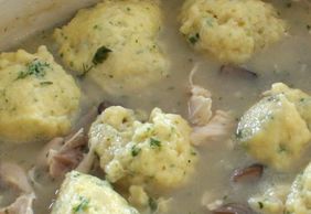 If you need a quicker version, you can use Bisquik and make the recipe on the box for biscuits to use as the dumplings.